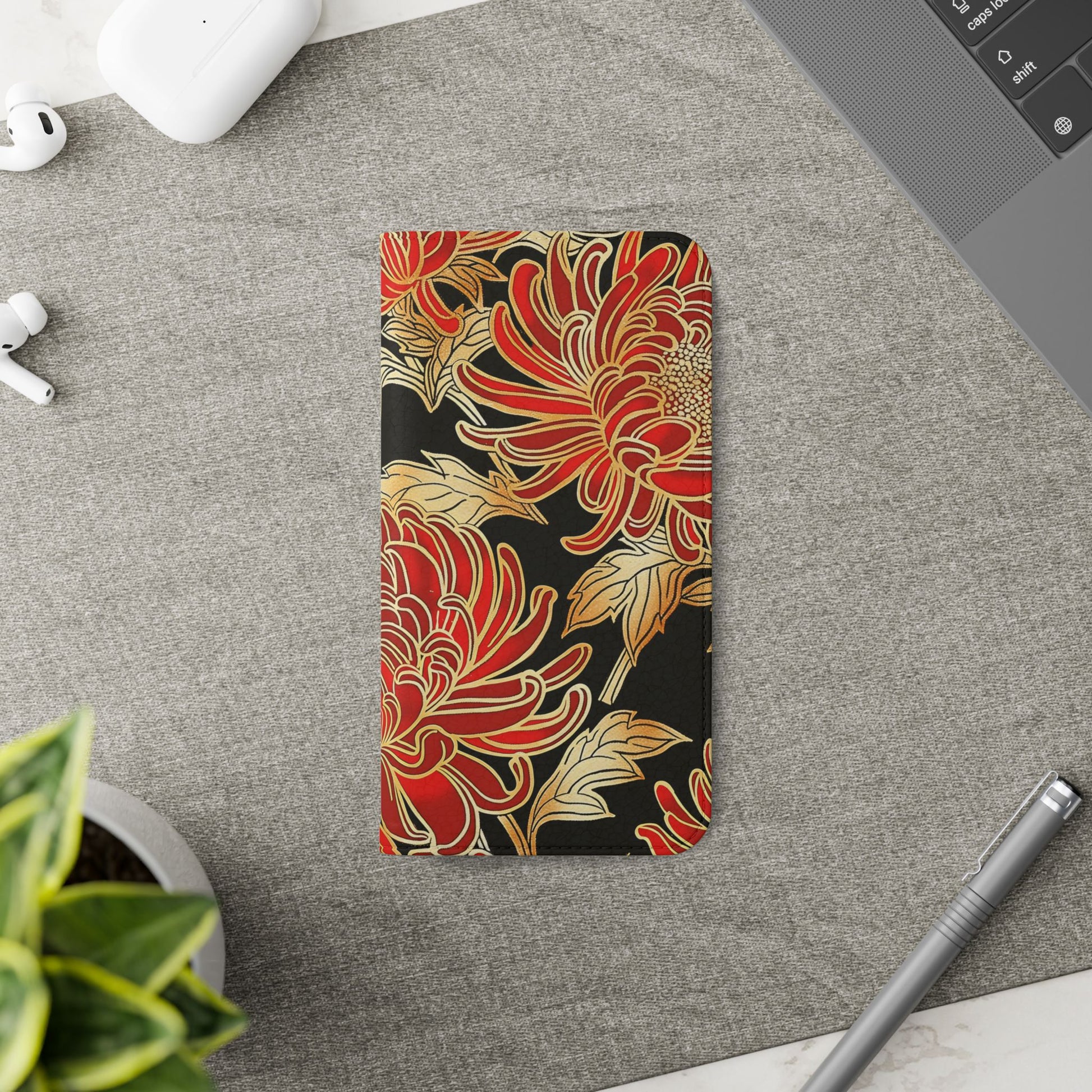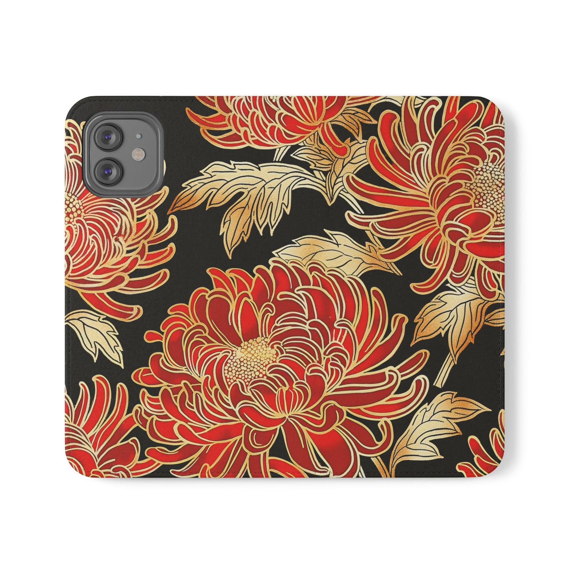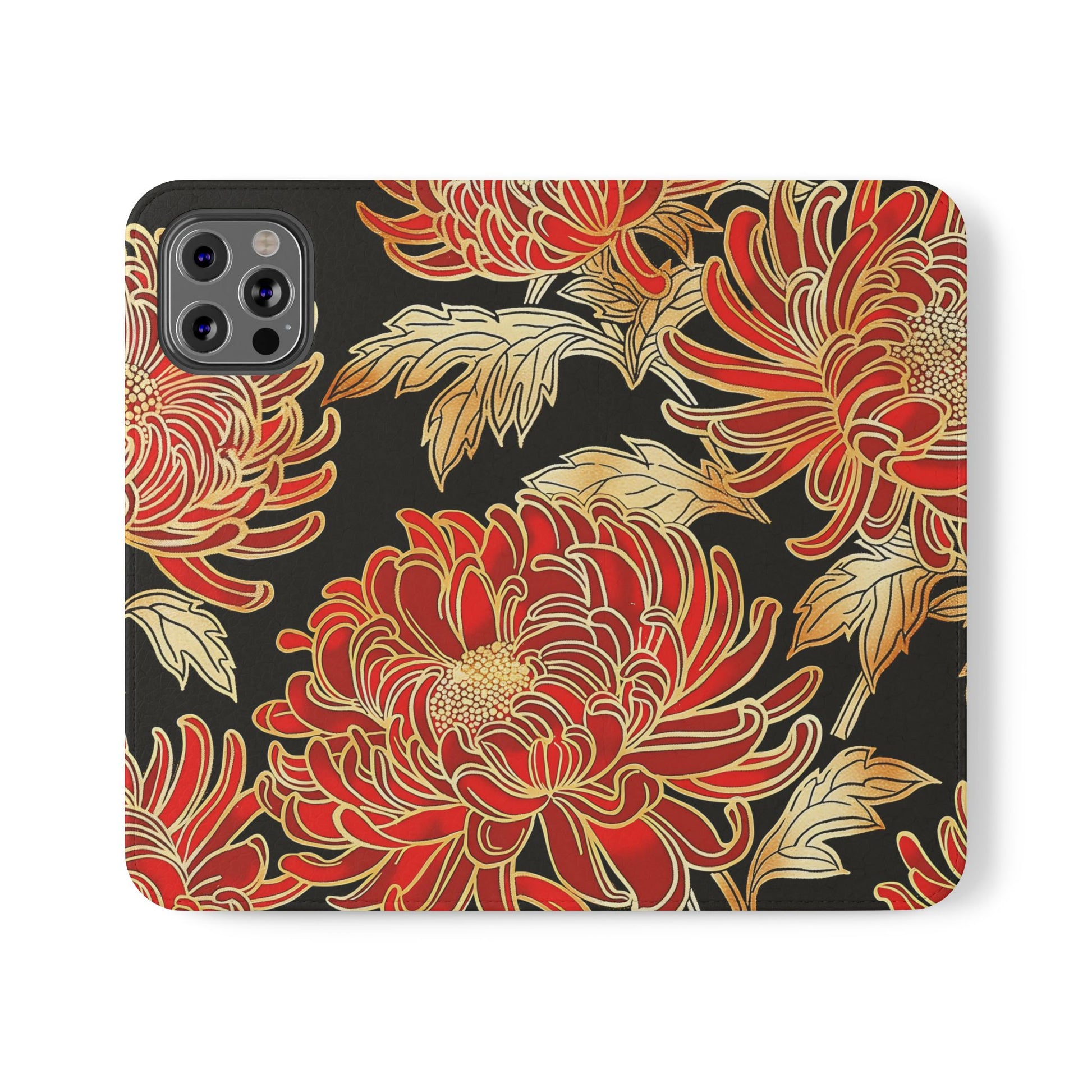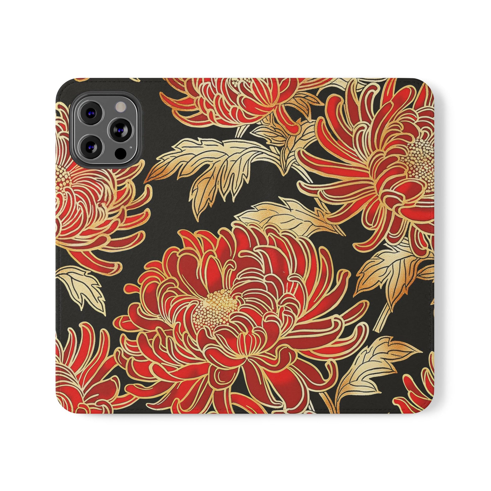 🌸 Ember Petals – Vegan Leather Flip iPhone Case