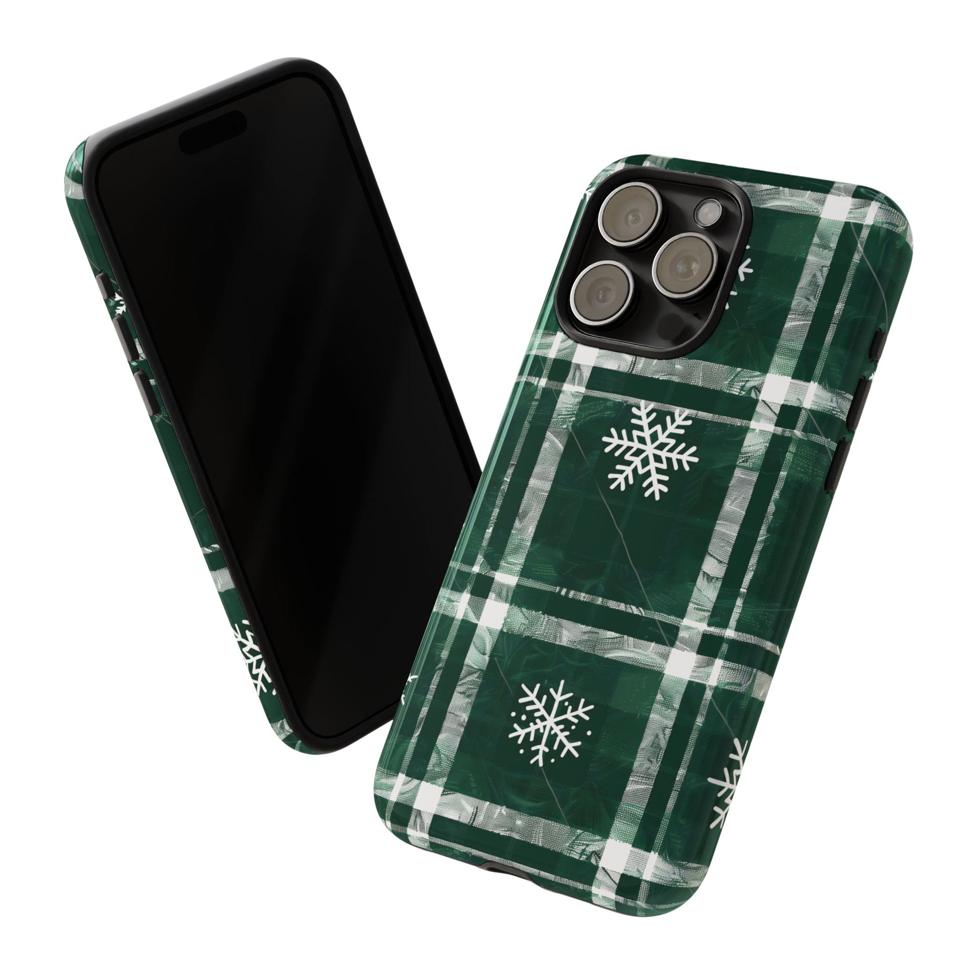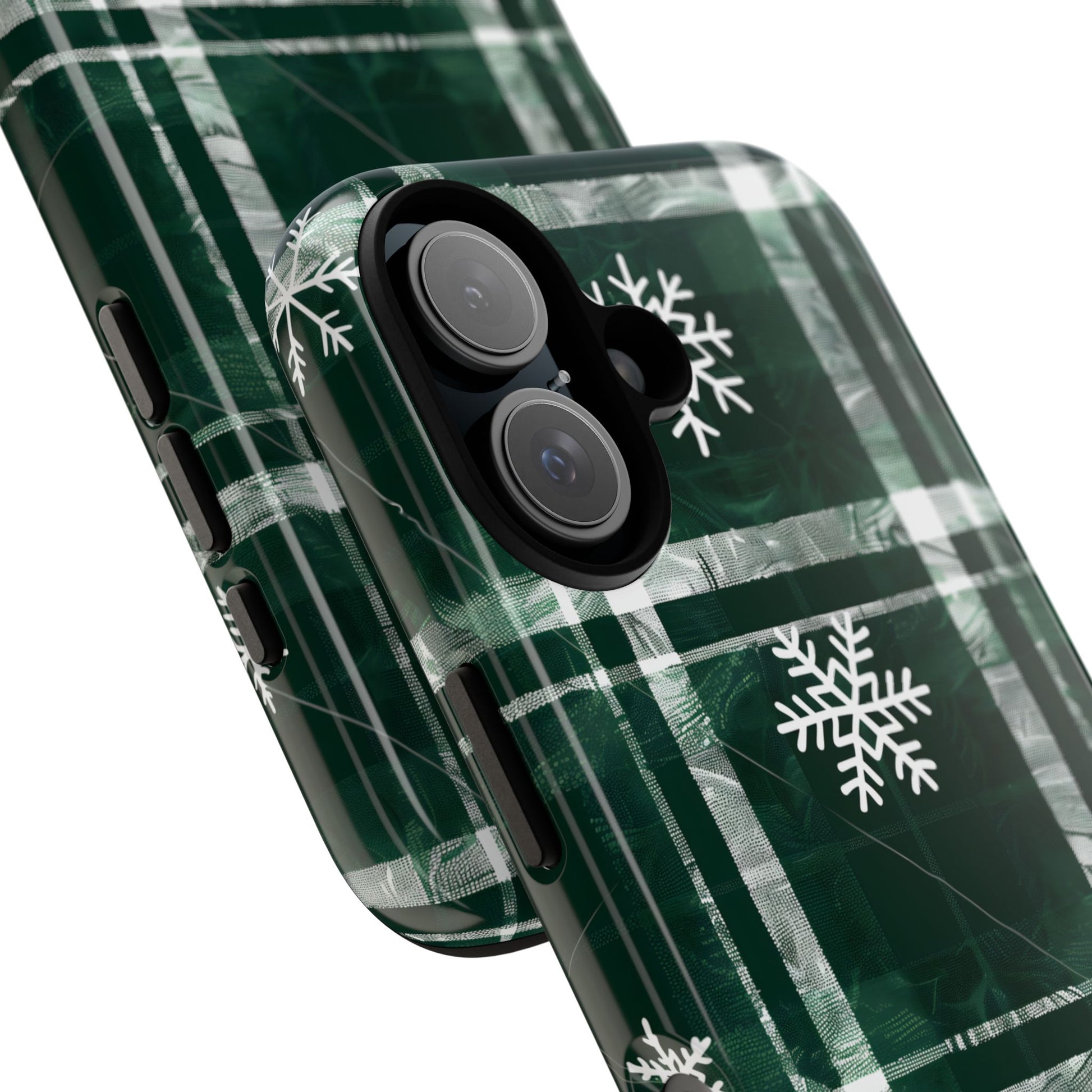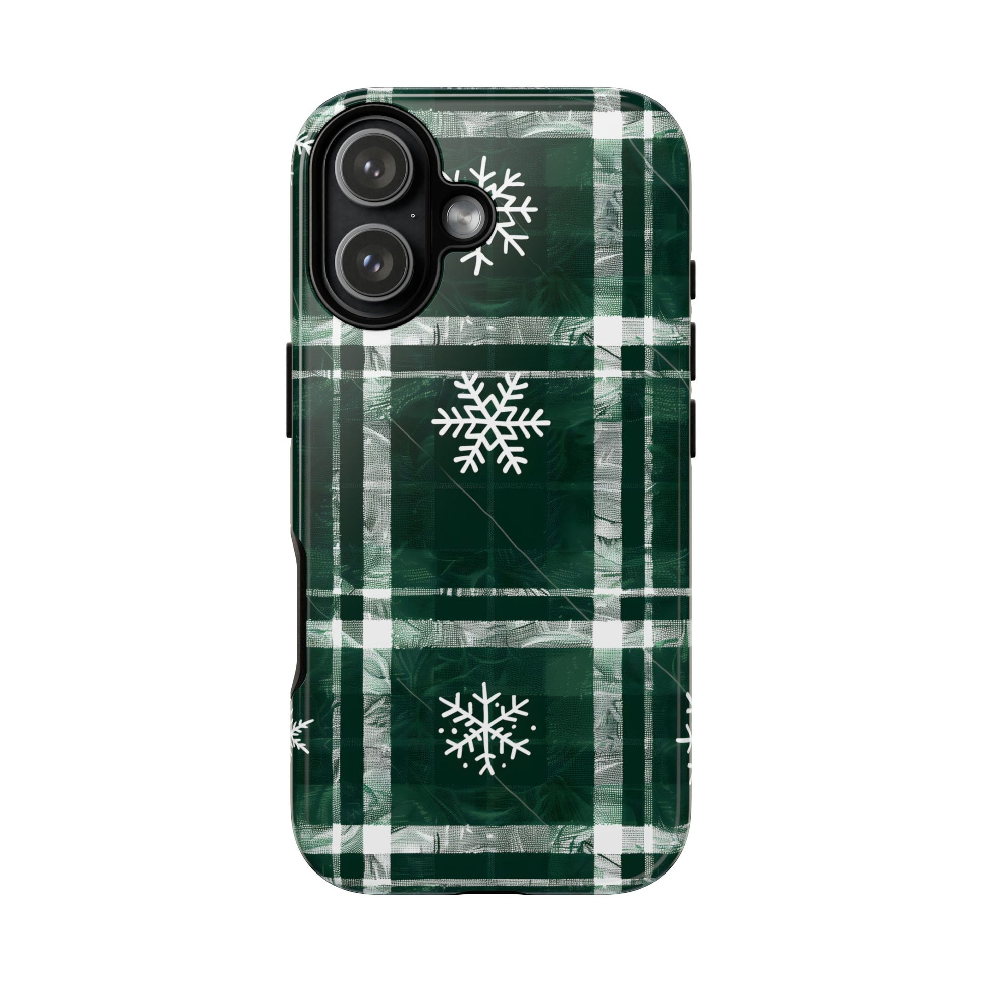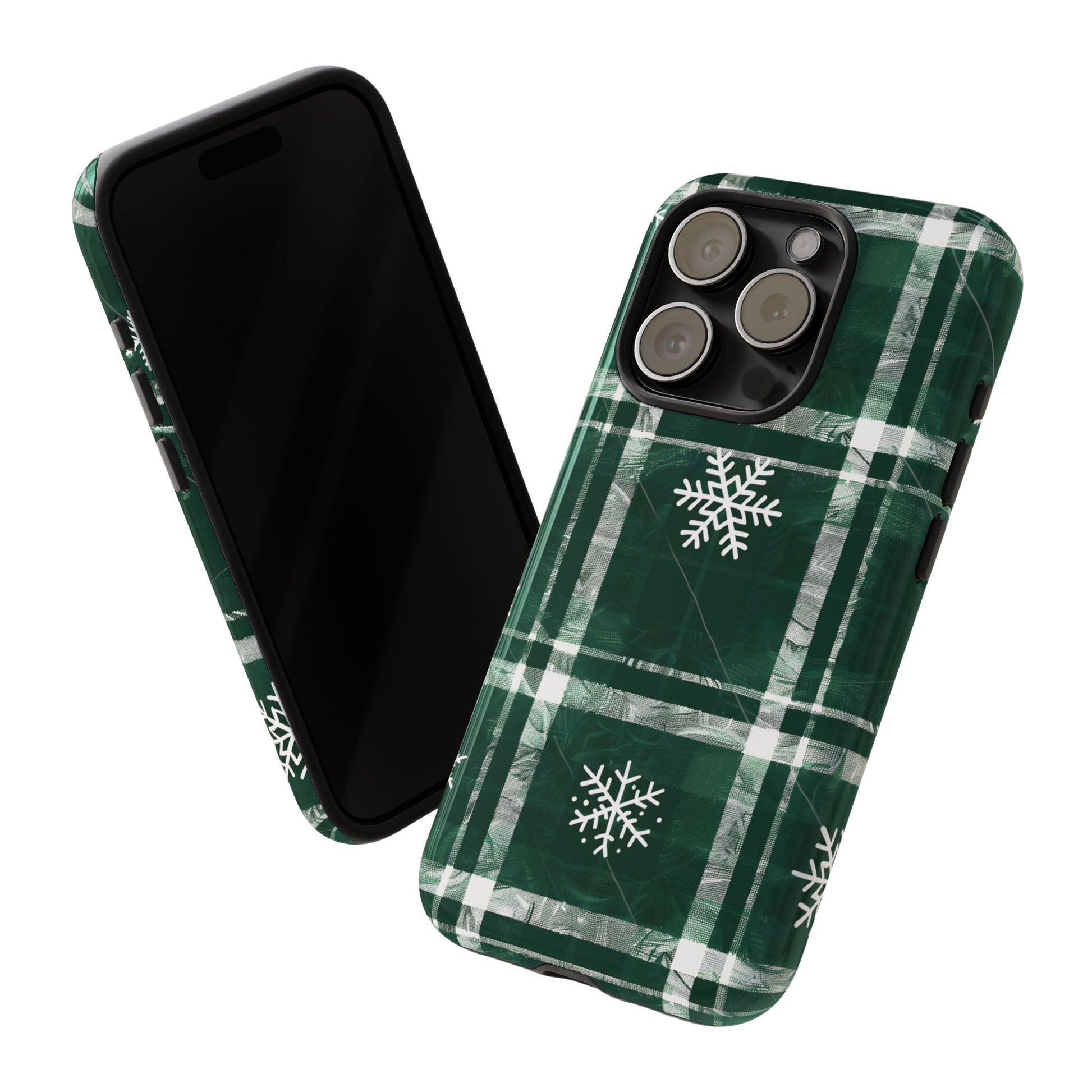 The glossy finish brightens every green tone and highlights the contrast of the snowflakes, giving your phone a timeless and polished holiday look.