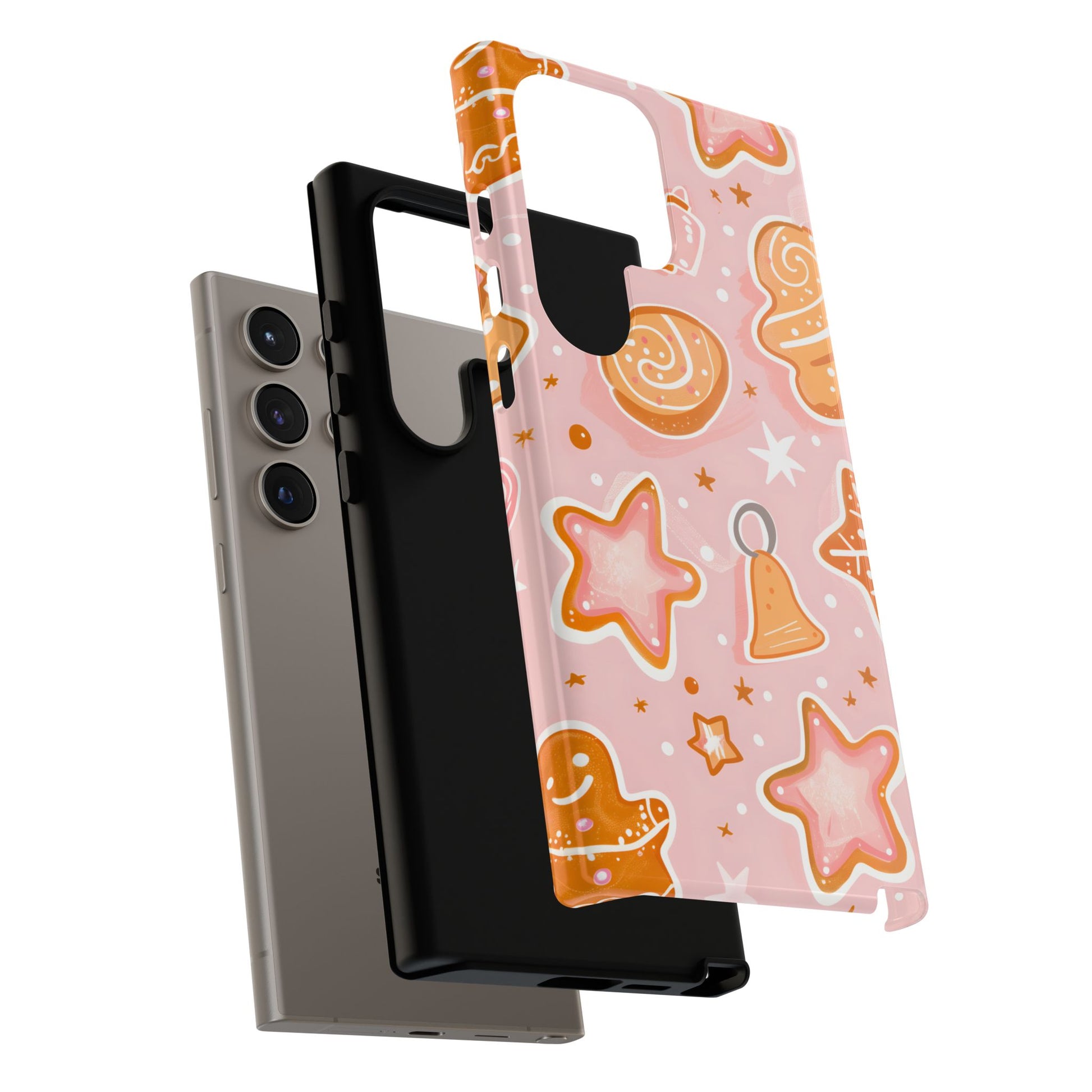 Soft, sweet, and full of festive charm — Gingerbread Sweet Stars gives your Samsung Galaxy a warm Christmas bakery vibe. With adorable gingerbread figures, frosted cookie stars, candy swirls, and holiday bells, this pastel–pink pattern is perfect for anyone who loves cozy seasonal aesthetics.