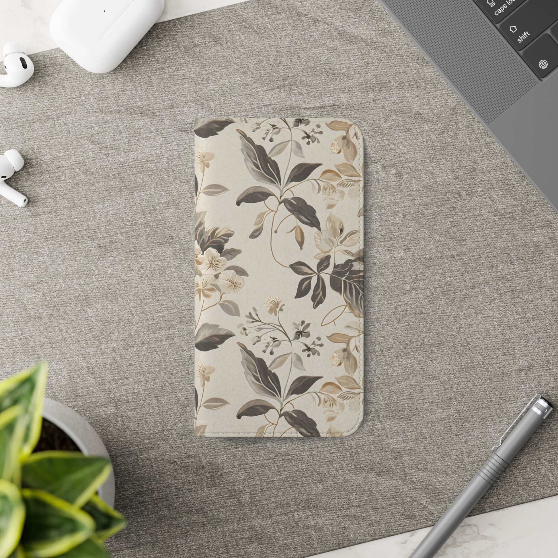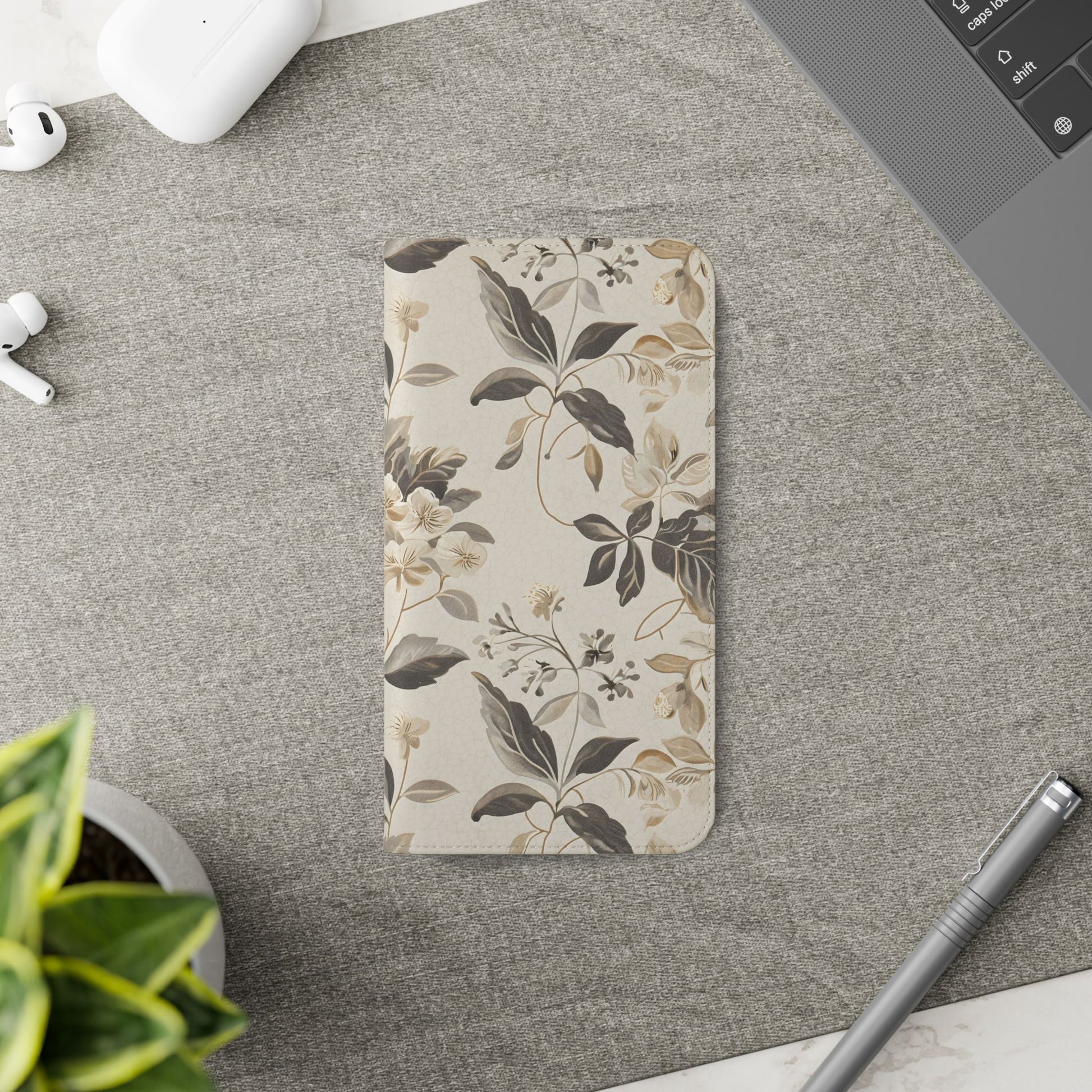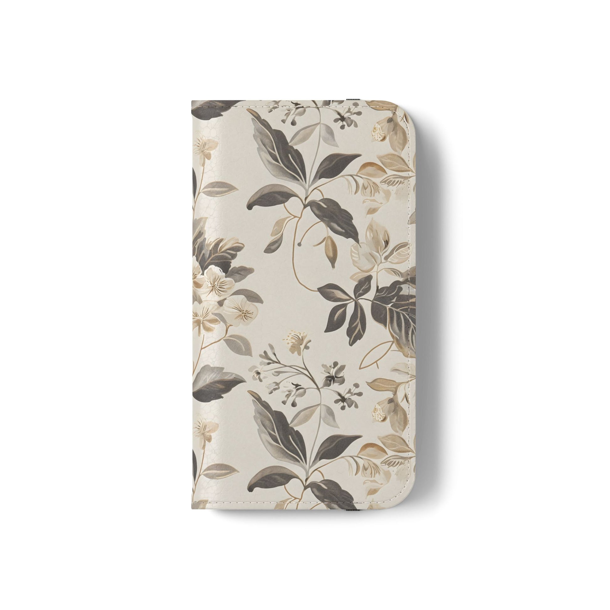🌿 Golden Botanica – Vegan Leather Flip Case