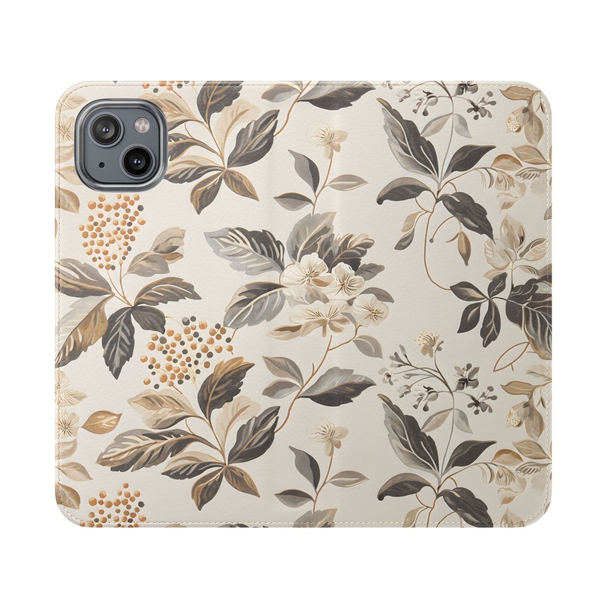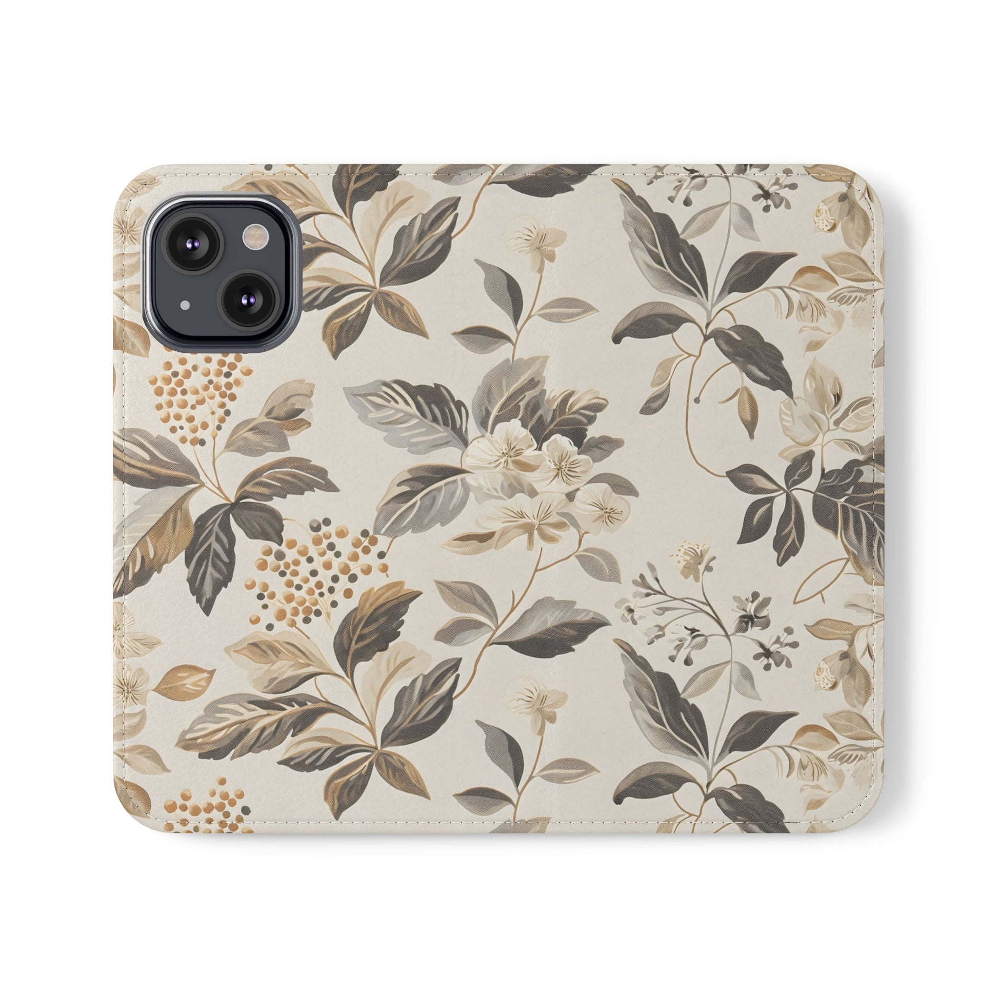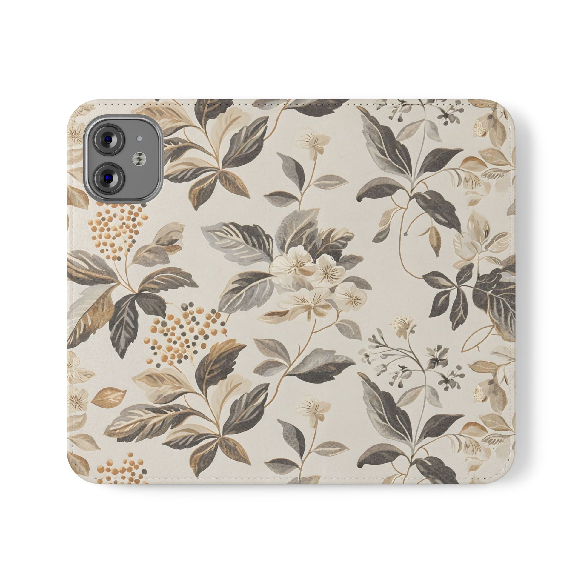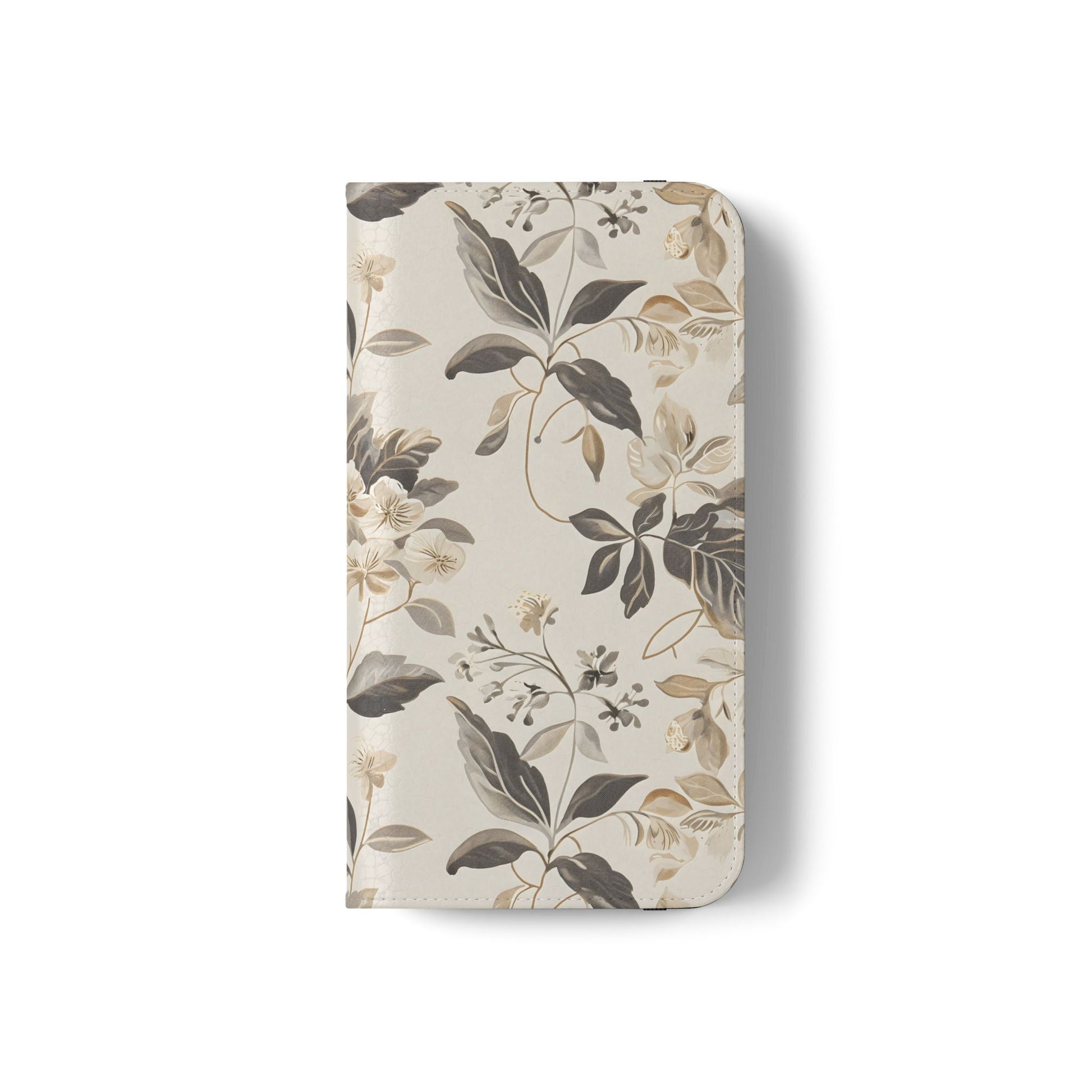 🌿 Golden Botanica – Vegan Leather Flip Case