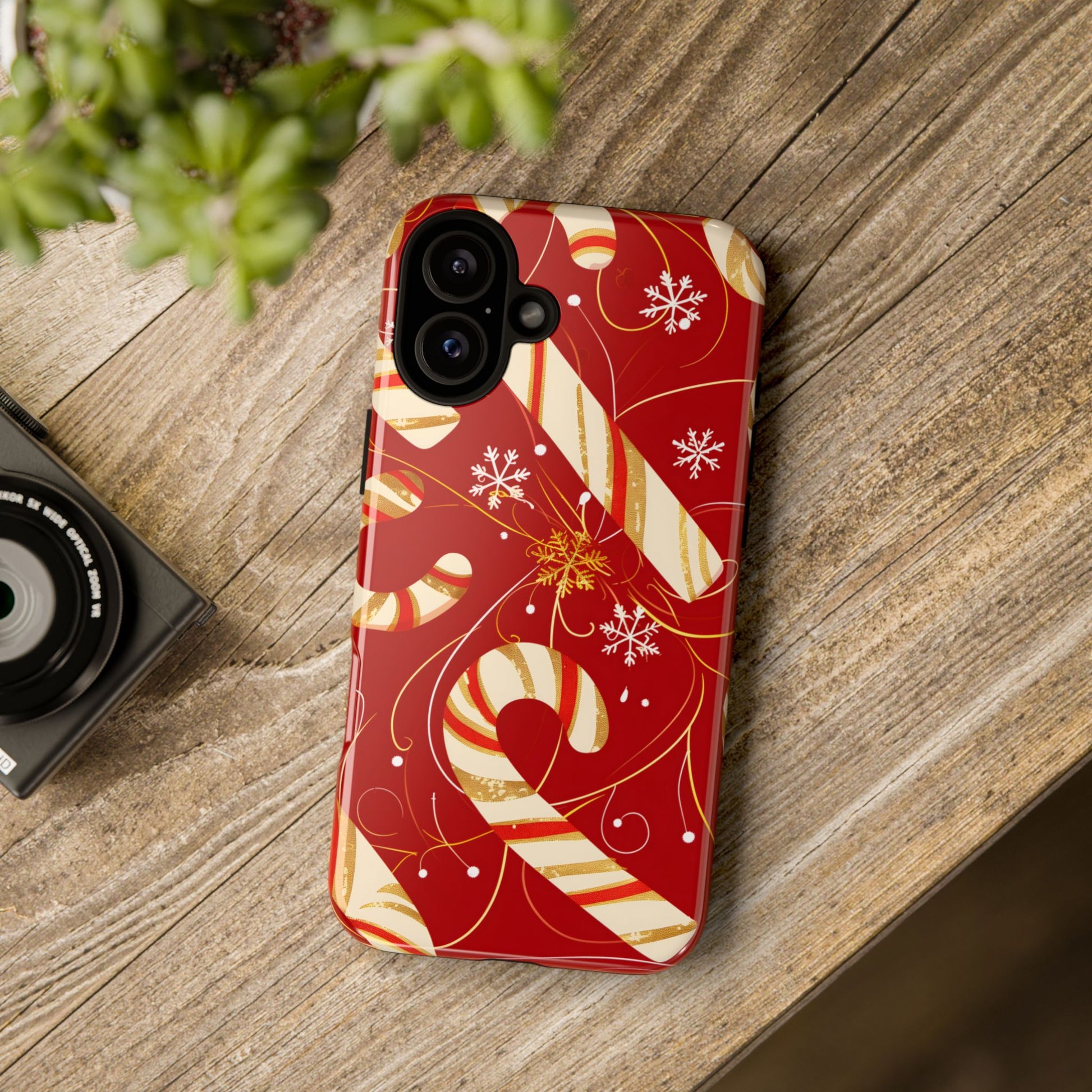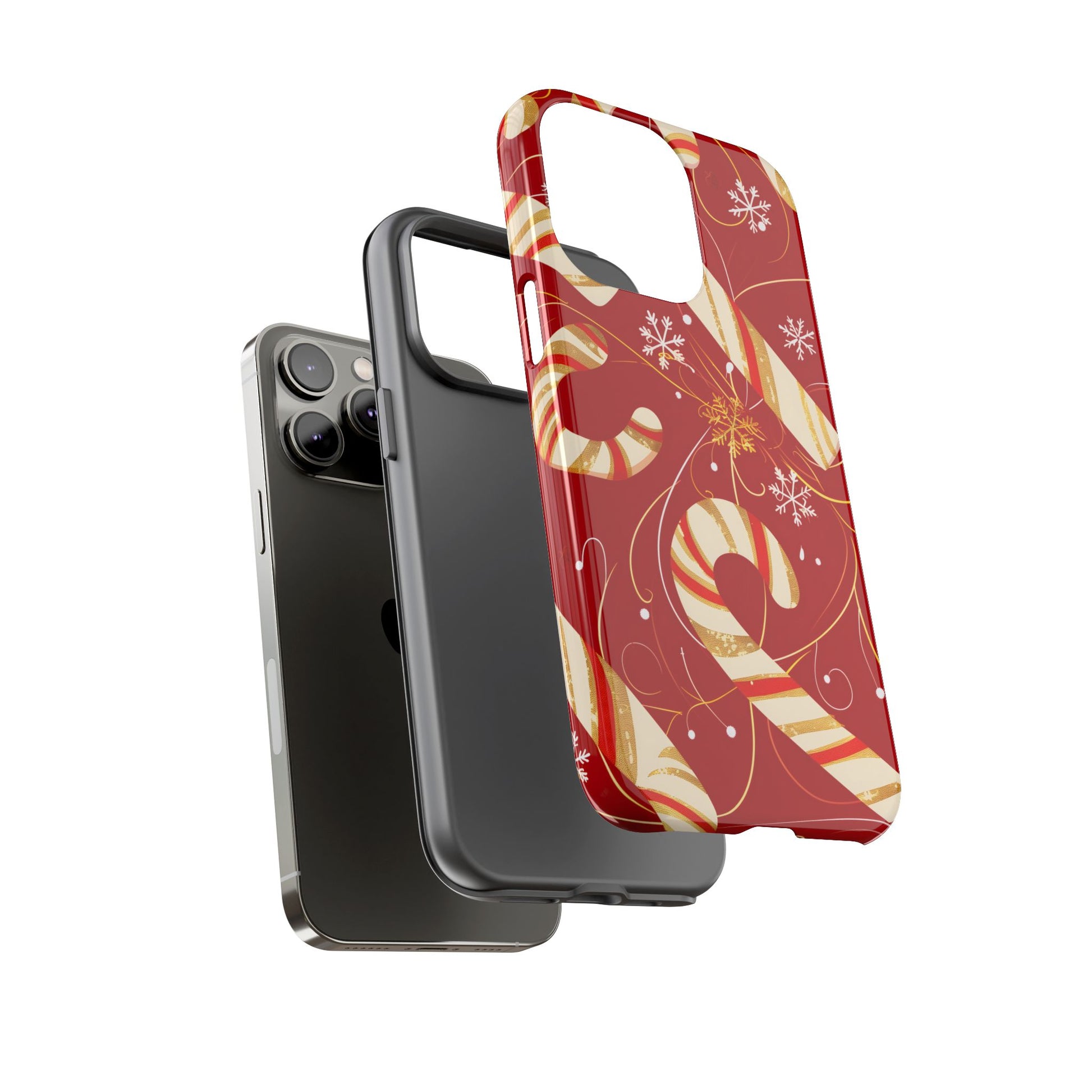 Bold, elegant, and full of festive sparkle — Golden Candy Cane Luxe transforms your iPhone into a Christmas showpiece. Rich red tones pair beautifully with cream-and-gold striped candy canes, swirling accents, and delicate snowflakes. It’s a luxurious twist on a classic holiday icon, perfect for anyone who loves a refined seasonal aesthetic.