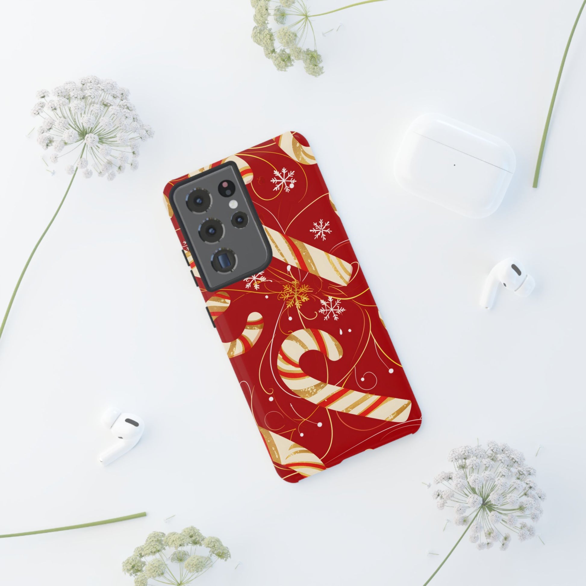 Bold, festive, and beautifully refined — Golden Candy Cane Luxe wraps your Samsung Galaxy in rich holiday color and shimmering gold accents. Classic candy canes, swirling details, and crisp snowflakes sit atop deep Christmas red, creating a timeless yet luxurious seasonal look.