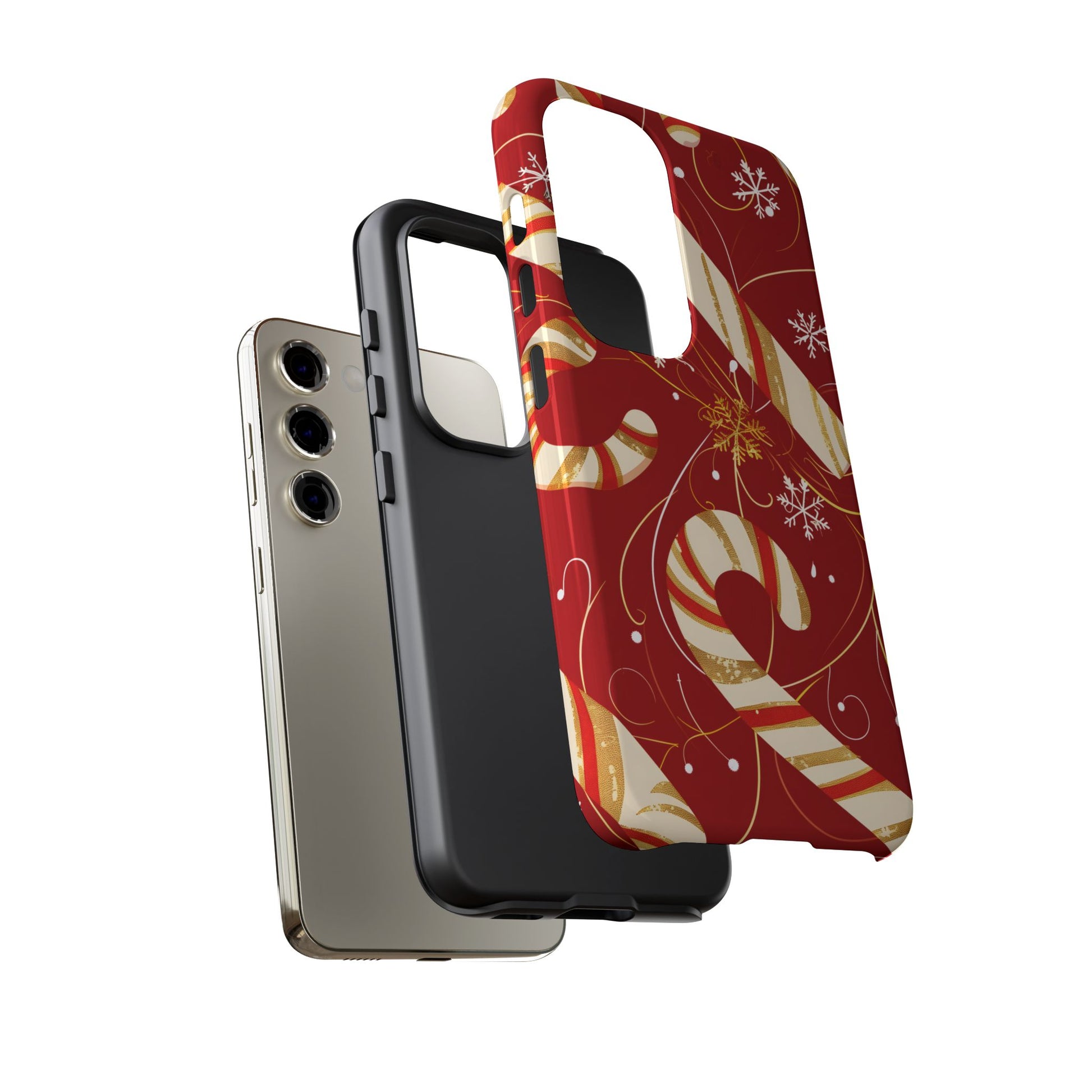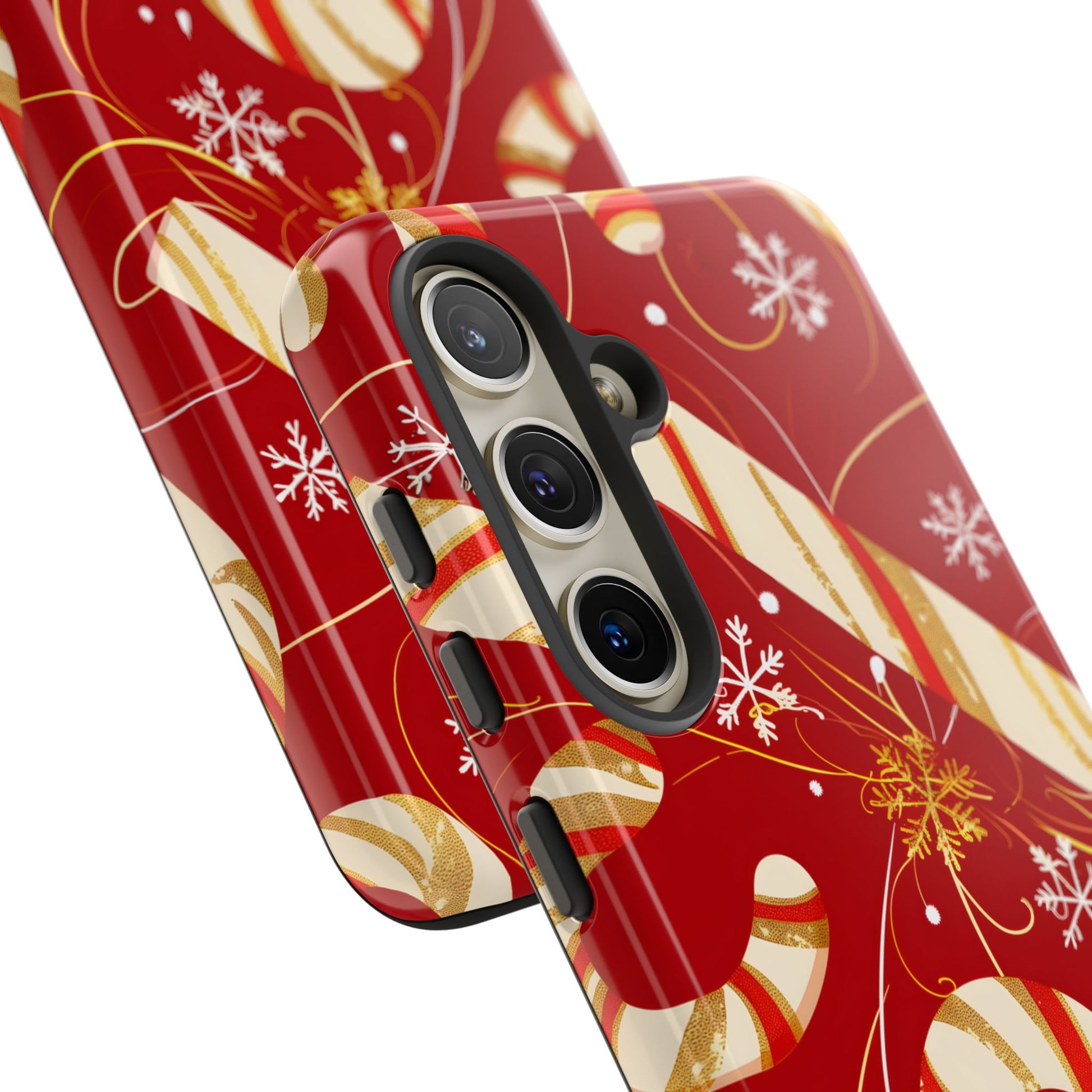 ✨ Golden Candy Cane Luxe – Tough Glossy Samsung Galaxy Case