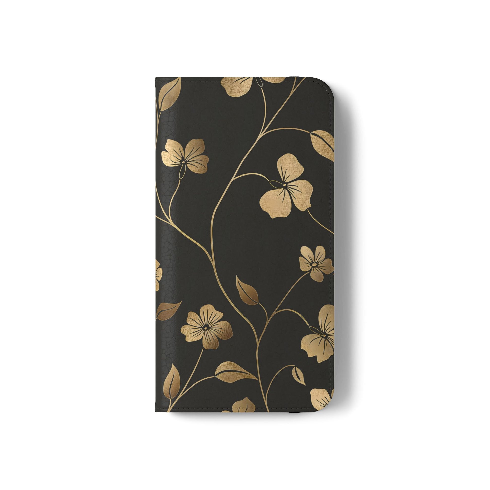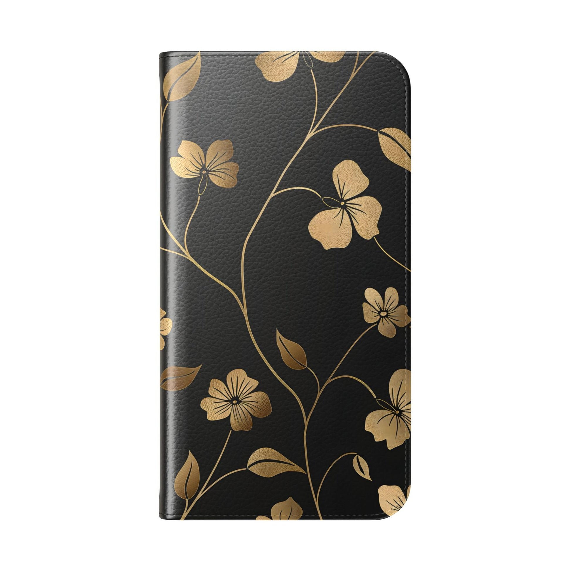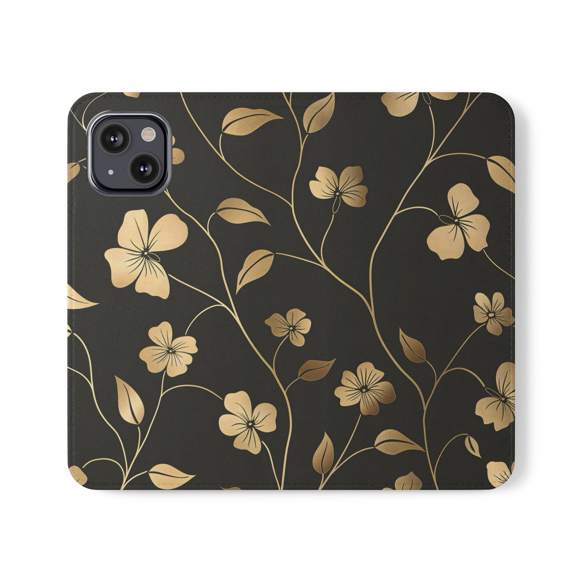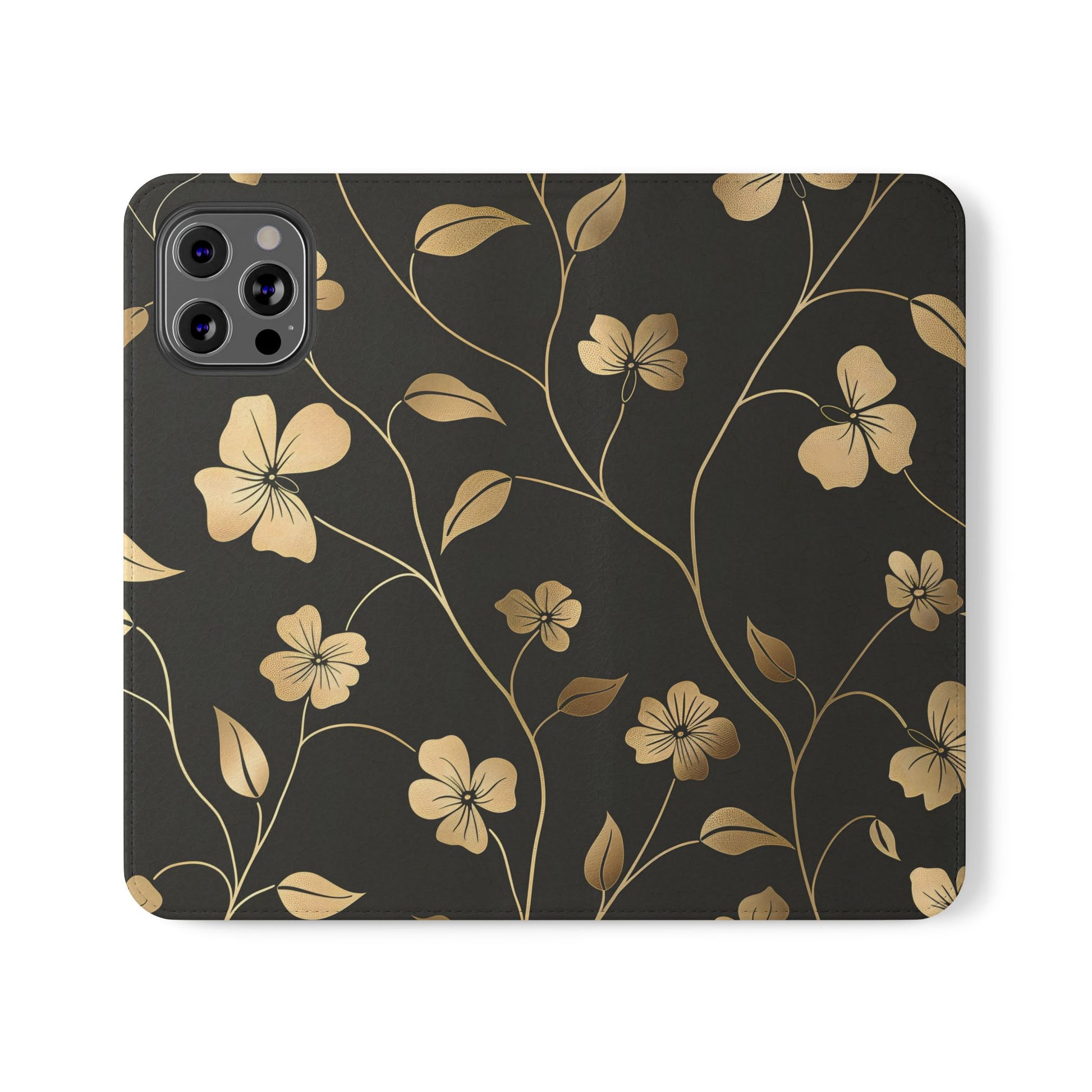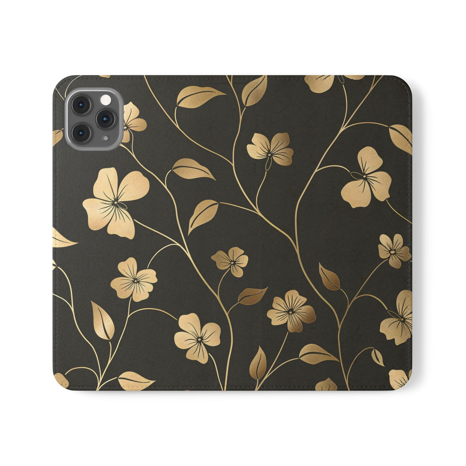 🌟 Golden Elegance – Vegan Leather Flip iPhone Case