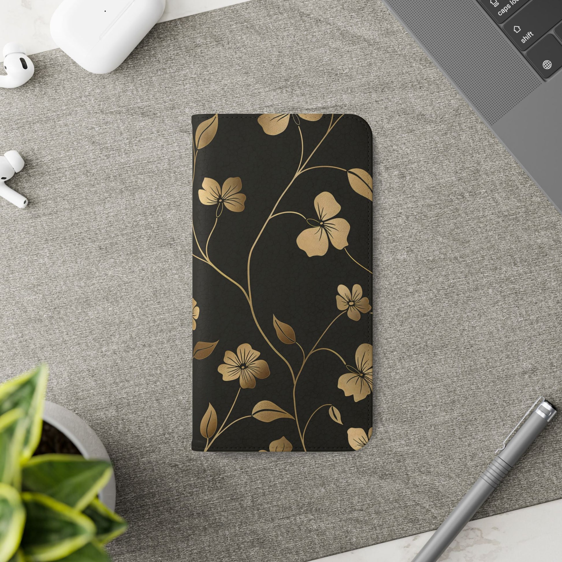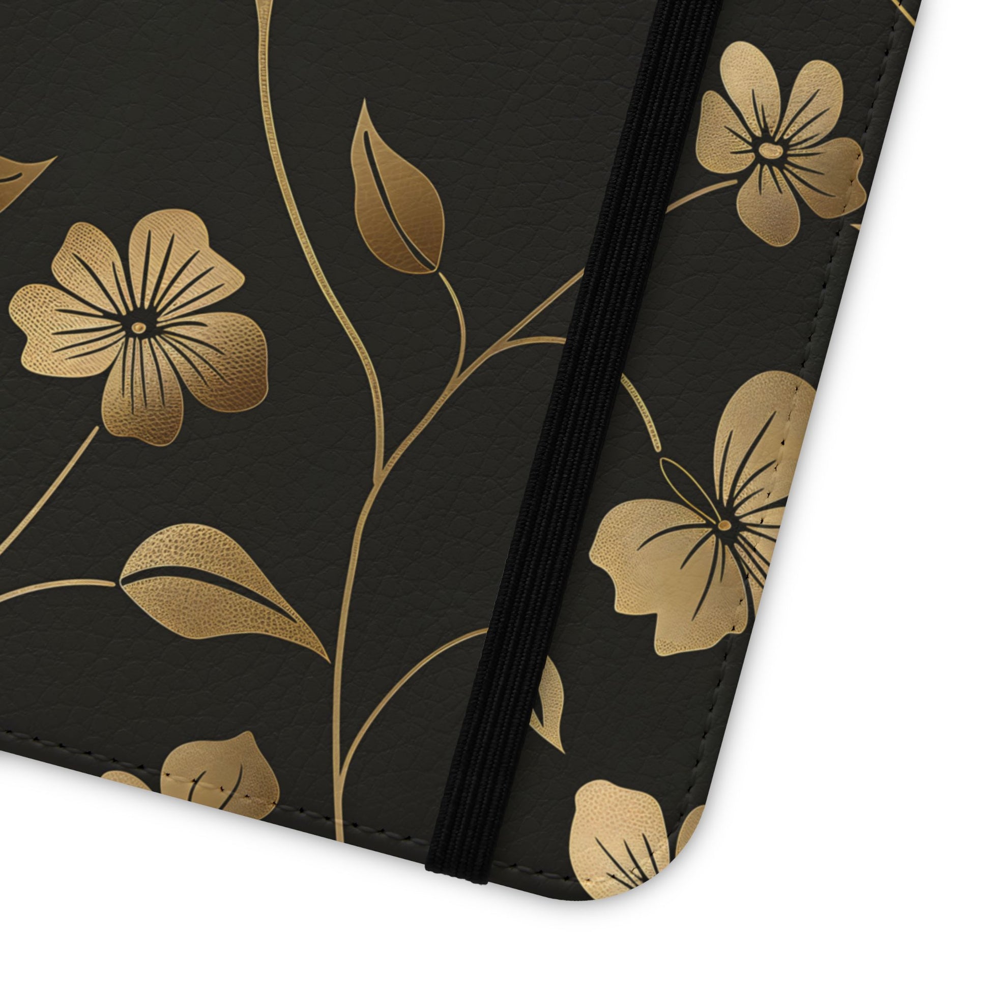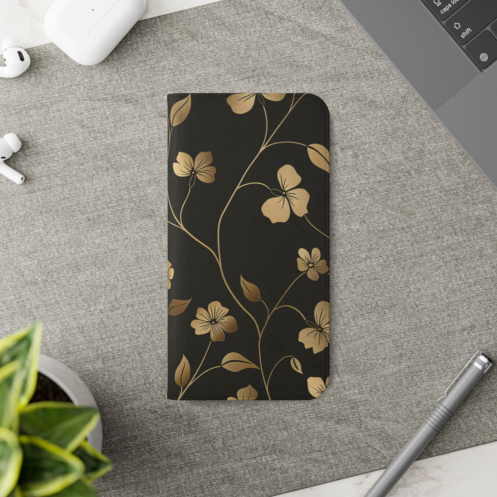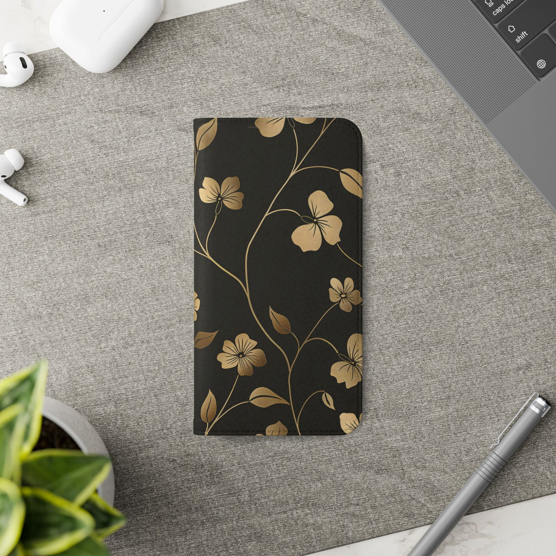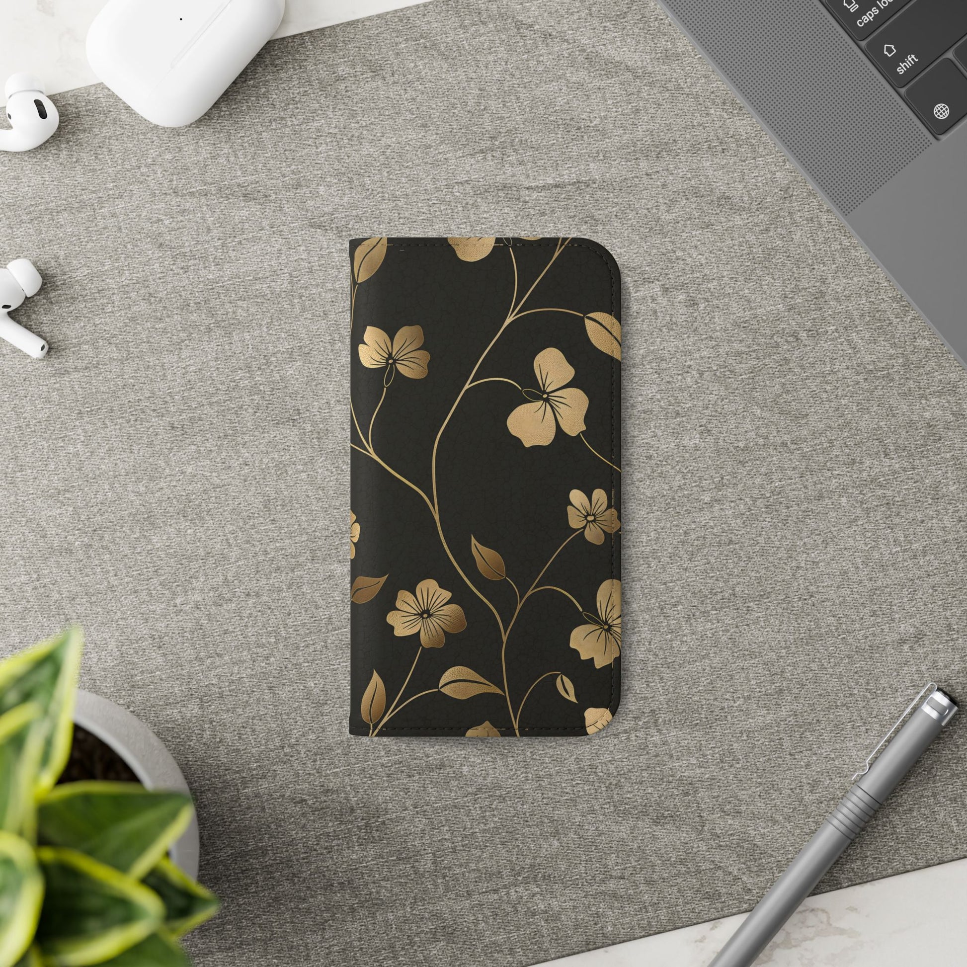 🌟 Golden Elegance – Vegan Leather Flip iPhone Case