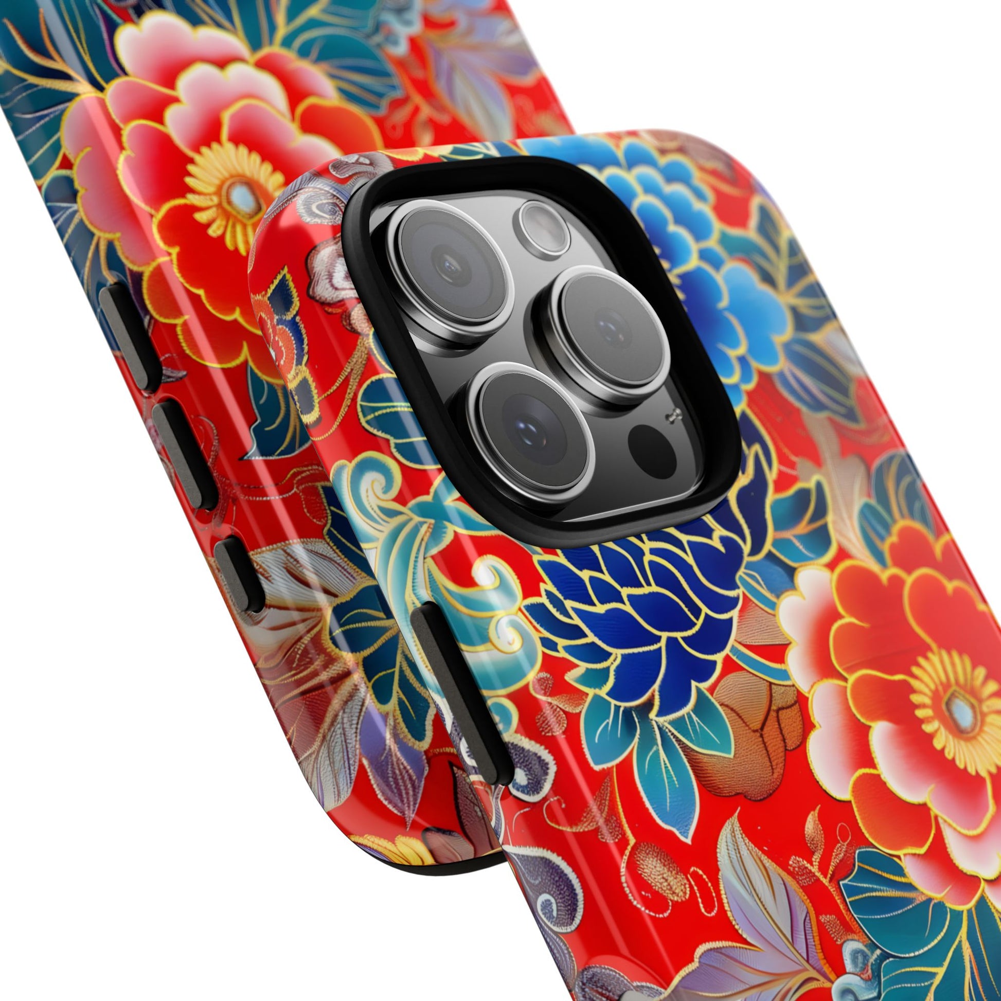 Immerse your iPhone in the brilliance of Oriental Blossom, where vivid blossoms burst with life against a deep crimson backdrop. Each flower is accented with shimmering golden outlines, creating a look that feels both traditional and modern. Inspired by classic Eastern artistry, this case is bold, elegant, and designed for those who want their phone to stand out as a true statement piece.