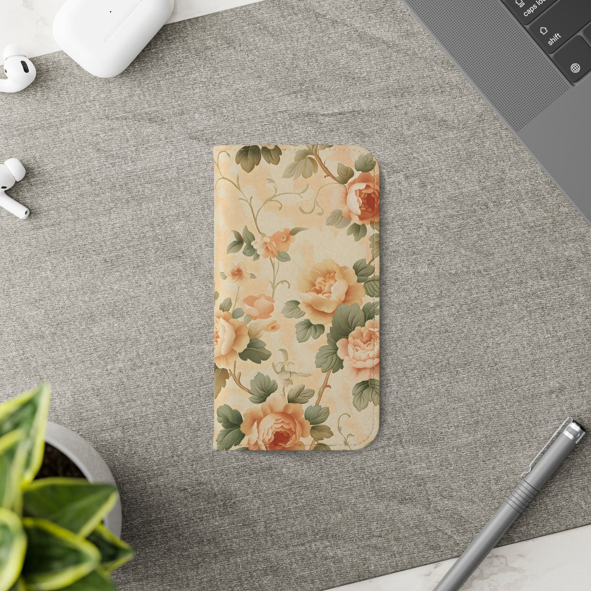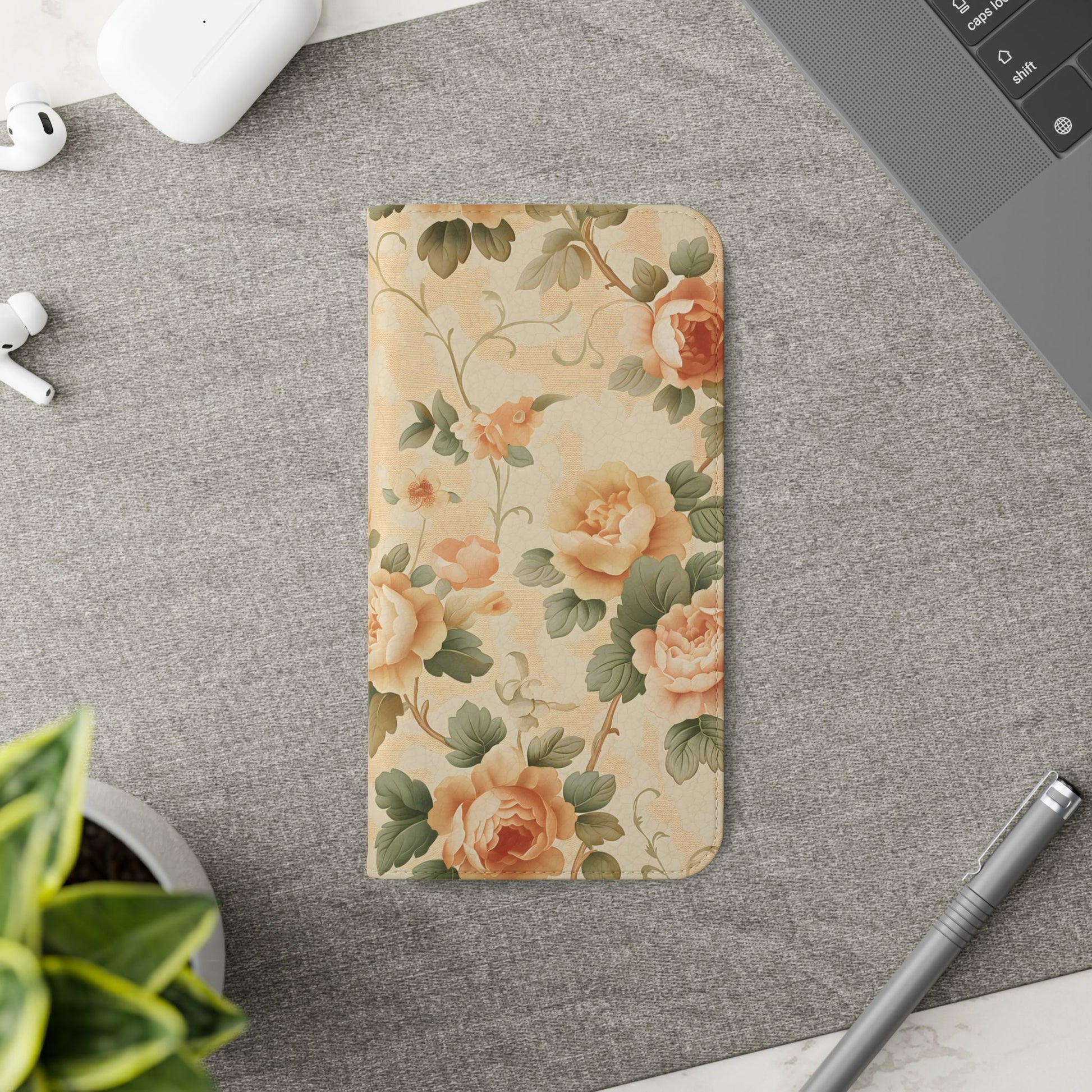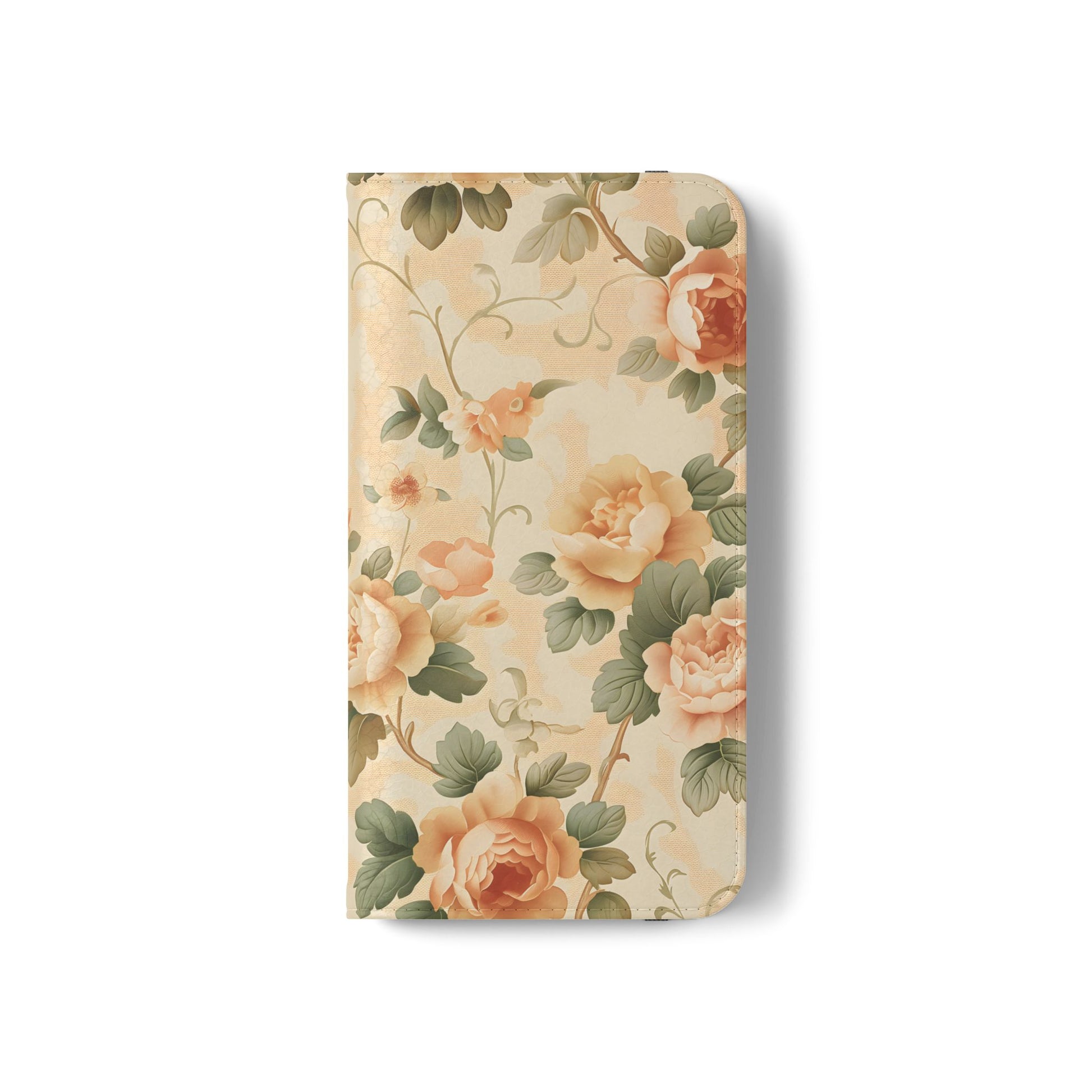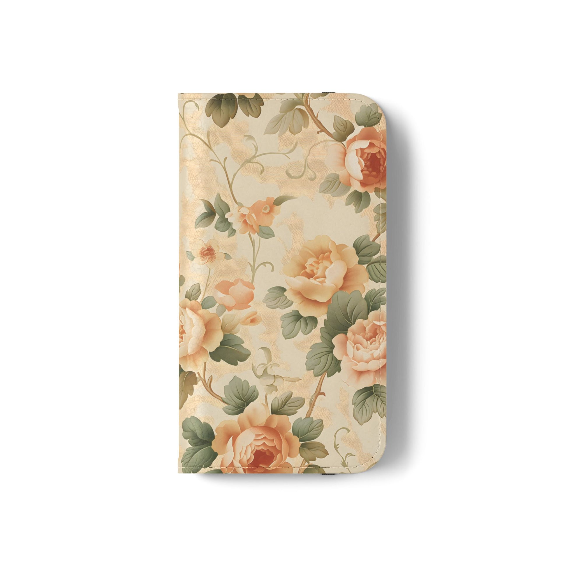 🌸 Vintage Bloom – iPhone Vegan Leather Wallet Case